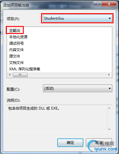 右击”应用程序文件夹“,点击”添加“,选择”项目输出...“,注意:在项目栏要选择你自己的项目(我的项目名:StudentJisu),然后选择”主输出“,点击确定。