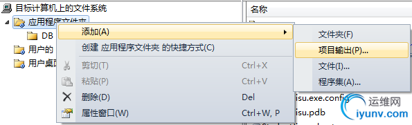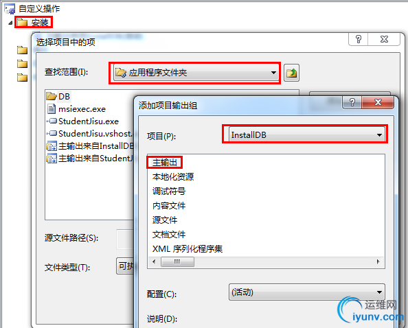 然后,右击”安装“,选择”应用程序文件夹“,选择安装程序类”InstallDB“,还是选择”主输出“,确定。