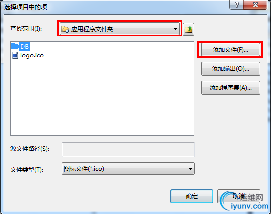 然后再右击刚才添加好的"DB"文件夹,”添加“,”文件“,将你的数据库添加进来。