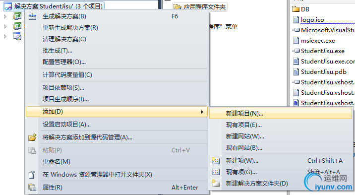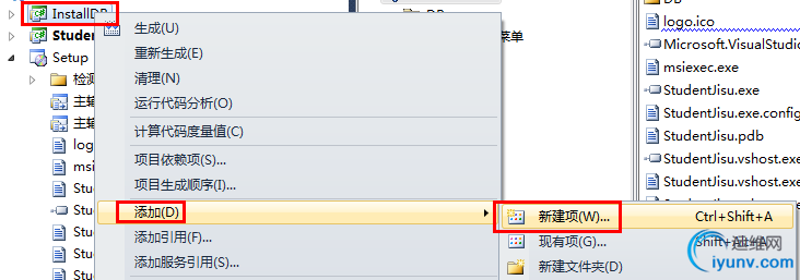 新建一个类,用于写数据库附加到 数据库管理系统中的 代码。右击刚新建的那个”InstallDB“,点击”添加“,选择”新建项“。