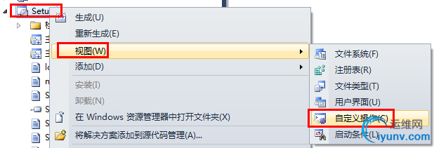 添加 附加数据库的 主输出。右击”setup“,选择”视图“,”自定义操作“。