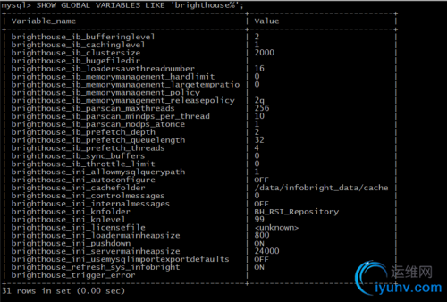 [iyunv@localhost infobright]# cp support-files/my-ib.cnf.in /etc/my-ib.cnf#其中参数变量需要修改
