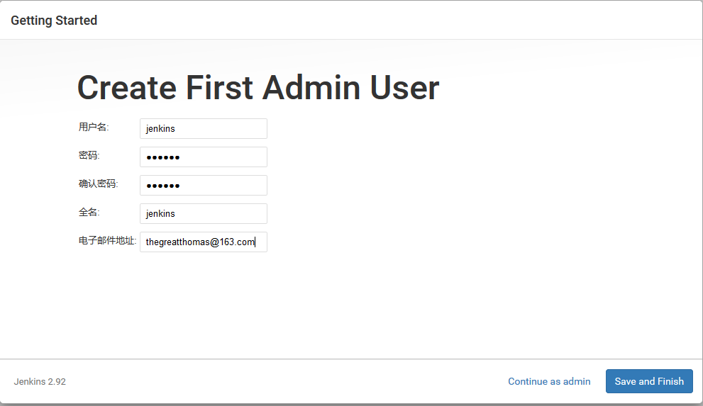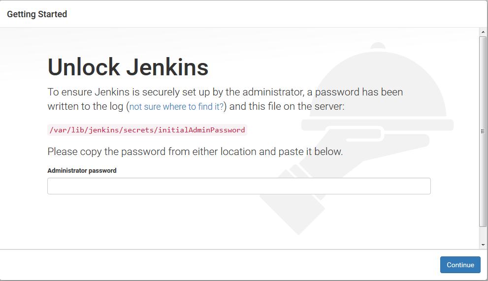 将文件中的admin初始密码复制出来,粘贴到Unlock Jenkins页面中。点击Continue按钮。