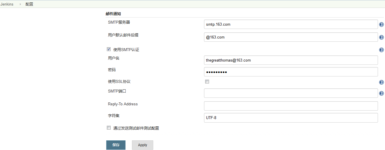 配置密码为:163邮箱的客户端授权密码(在163邮箱的设置--POP3/SMTP/IMAP--客户端授权密码中可以配置)