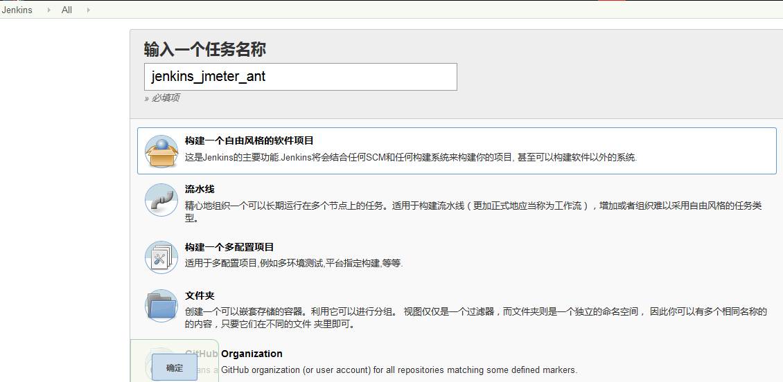 输入任务名称,选择自由风格的软件项目,点击确定按钮